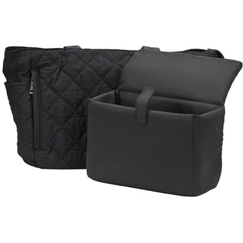 ナチュラルな雰囲気のキルティングトートバッグ。取り外し可能なカメラインナー付きで一眼レフカメラやミラーレス、レンズなどの機材を衝撃から守るクッション入りインナーボックスが付属。ボックスの中仕切りは取り外し可能で、収納する機材に合わせてカスタマイズできます。フタ部分にもクッション材を使用しているため、上に荷物を重ねても中の機材に影響はありません。軽量な生地を使用した、ソフトな手触りのトートバッグです。大きく開く開口部はファスナーで開閉可能。A4ファイルや上着などもサッと収納。通勤・通学・旅行などの普段使いはもちろん、イベントやお出かけにもぴったり。エコバッグやマザーズバッグとしても活躍します。