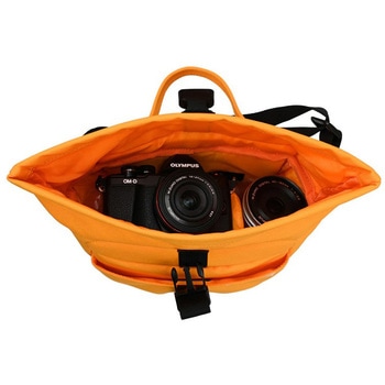 Colemanとのコラボレーションで誕生した、スタイリッシュなカメラバッグ。メイン収納部は開口部をくるくる巻いて閉じるロールトップです。ミラーレス一眼にスペアバッテリー等の小物をピッタリ収納。大型カメラバッグと同じ厚手のクッション材を使用しています。