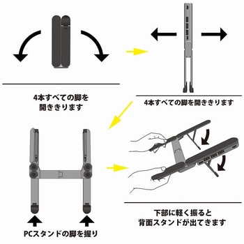 コンパクトに収納できるUSBポート付きPC・タブレットスタンド、コンパクトスタンドH。
