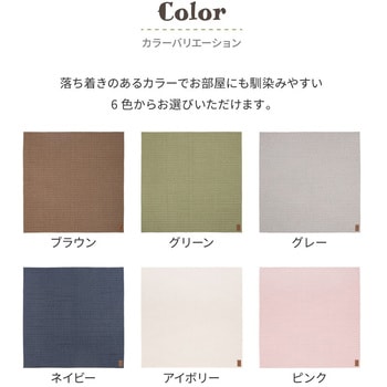 用途綿混のスウェット生地は肌ざわりがよく、季節を問わず使いやすい素材感です。汚れても洗濯機で丸洗いできるから清潔に使え、小さなお子様やペットのいるご家庭でも安心。裏面には滑り止め付き。ホットカーペット・床暖房にも対応しています。霜降りの入った深みのあるカラー、全6色からお選びいただけます。厚さ(mm)5備考洗濯可対応ホットカーペット寸法(cm)130×190機能低ホルムアルデヒド滑り止め効果あり組成表面:ポリエステル75%・綿25% 中材:ポリエステル100%(固綿) 裏面:不織布(滑り止め付き) タグ:合成皮革内容量1枚