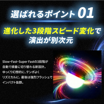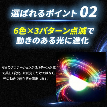 2つ目【6色×3パターン点滅で 動きのある光に進化】