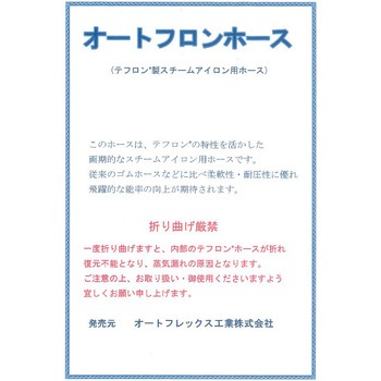 ※折り曲げ厳禁。一度折り曲げますと、内部のテフロンホースが折れ復元不能となり、蒸気漏れの原因となります。ご注意の上、お取り扱い・ご使用くださいますよう宜しくくお願い申し上げます。