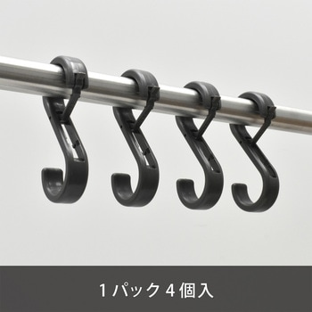 ロック機能付き S字フック S-Lock 小サイズ 4個入 黒
