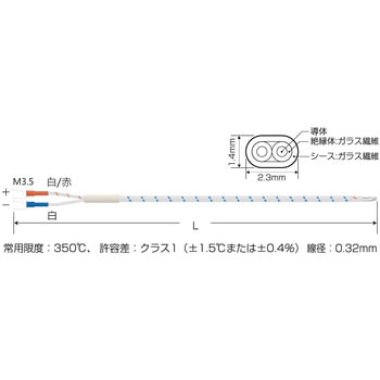 RoHS2適合品常用限度:350℃、許容差:クラス1(±1.5℃)線径:0.32mm熱電対素線にガラスなどの被覆を施したもので、保護管などには入れずそのまま使用する熱電対です。K熱電対なので、デジタル温度コントローラ monoOne-120/200の他、市販の温度調節器にも対応可能です。