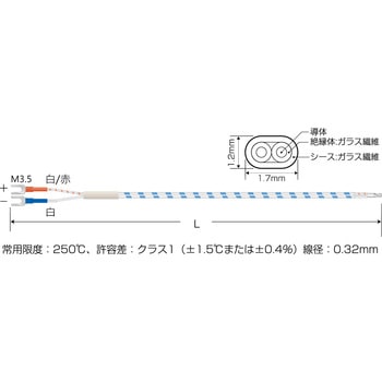 常用限度:250℃、許容差:クラス1(±1.5℃)線径:0.32mm
