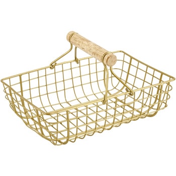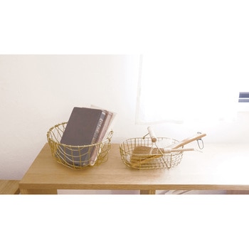 まるで真鍮のような質感のアイアンワイヤーバスケット。シンプルなデザインでリビングやキッチン、ランドリーやお庭など、場所を選ばず幅広いシーンでお使いいただけます。