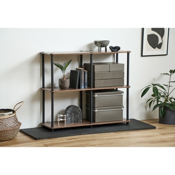 【2色展開】簡単に組み立てができるスチールポールラックです。工具不要で、ポールをはめてねじるだけで簡単に組み立てることができます。ポールはスチールのため、耐久性に優れ、組み立て時や使用時も安心してご使用いただけます。ブラックスチールとあたたかな木目調の木材の組み合わせで、スタイリッシュなお部屋を演出します。オープンタイプで、ディスプレイ棚としてお使いいただけます。魅せる収納にぴったりです。天板は広々と使えます。中段、下段は左右に分けて収納ができます。
