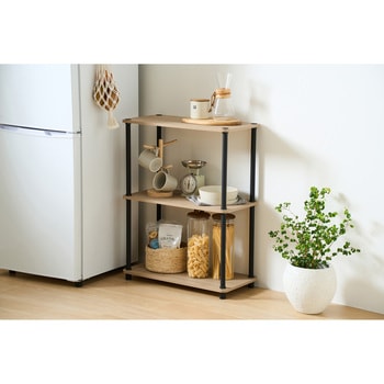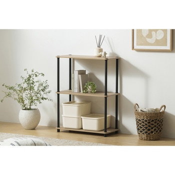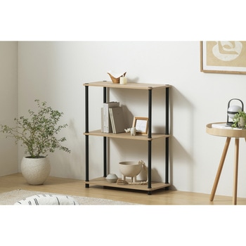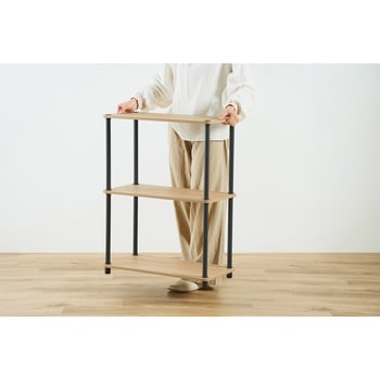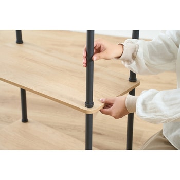 工具不要で、ポールをはめてねじるだけで簡単に組み立て可能なスチールポールラックです。ポールはスチールのため、耐久性に優れ、組み立て時や使用時も安心してご使用いただけます。ブラックスチールとあたたかな木目調の木材の組み合わせで、スタイリッシュなお部屋を演出します。オープンタイプで、ディスプレイ棚としてお使いいただけます。魅せる収納にぴったりです。