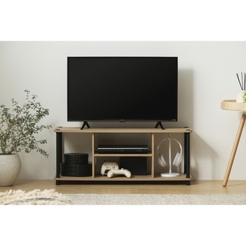 【2色展開】簡単に組み立てができるスチールポールラック AVボードです。40型までのテレビに対応できます。工具不要で、ポールをはめてねじるだけで簡単に組み立てることができます。ポールはスチールのため、耐久性に優れ、組み立て時や使用時も安心してご使用いただけます。ブラックスチールとあたたかな木目調の木材の組み合わせで、スタイリッシュなお部屋を演出します。オープンタイプで、熱がこもりにくくコード類もまとめやすいです。AVボードだけでなく、ロータイプのディスプレイ棚としてもお使いいただけます。魅せる収納にぴったりです。