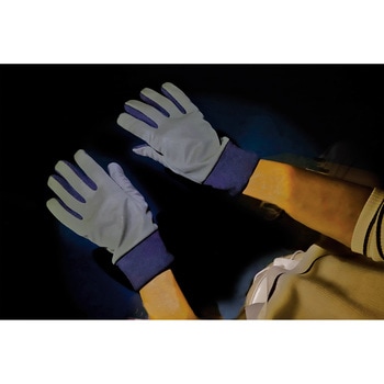 手の甲側、光を当てると全面に反射素材。