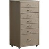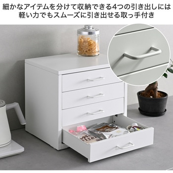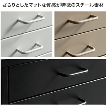 直線的でシンプルなデザインが魅力のキャビネットコンパクトな4段タイプとデスク横にすっきり収まる7段タイプさらりとしたマットな質感が特徴のスチール素材軽い力でもスムーズに引き出せる取っ手付き7段タイプは移動に便利なキャスター付き落ち着いたニュアンスの3色から空間に合わせて選択可能