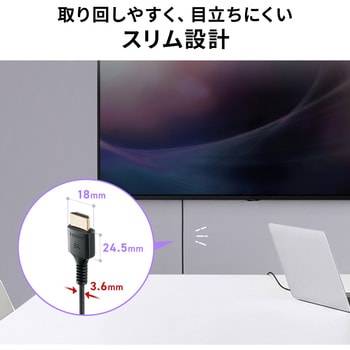 細くて取り回しのしやすいスリムHDMIケーブル(UltraHighSpeed認証品)