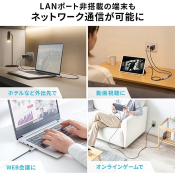 USB Type-CポートをLANポート(RJ-45)に変換し、有線ネットワークに直接接続が可能です。