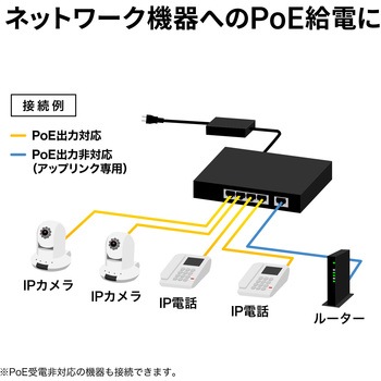 1~4ポートはPoE出力に対応、5ポートはPoE出力非対応のアップリンクポートです。