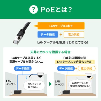 IEEE 802.3at(PoE+)に対応しており、1ポート最大30Wの給電が可能です。(全ポート合計60Wまで)