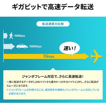 接続する機器に合わせて10/100/1000Mbps自動切り替えが可能な、AUTO-Negotiation機能を搭載しています。
