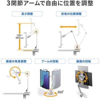 3関節のアームタイプを搭載し、クランプ取り付けで使用する前後上下の位置調整ができるアームスタンド。