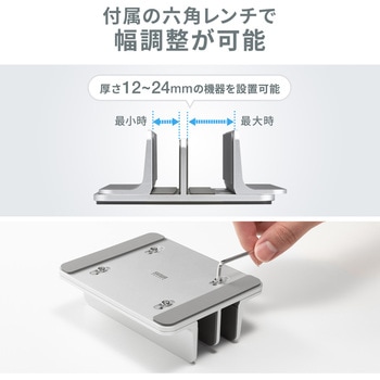 ノートパソコンの画面を閉じて外部ディスプレイと接続する「クラムシェルモード」での使用に最適な縦置きタイプのアルミスタンドです。