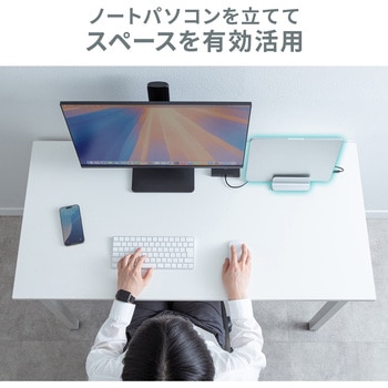 垂直にノートパソコンを設置することで、作業スペースやデスクスペースを節約できます。