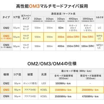 OM4よりも経済的で、短中距離の高速通信用途に最適です。
