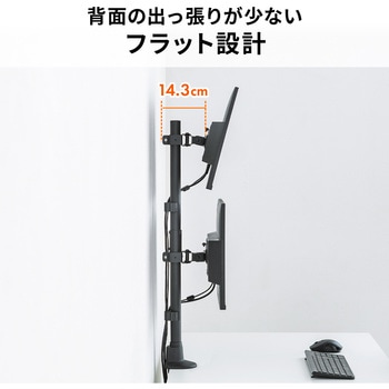 わずか奥行き38mmの薄型ショートクランプのモニターアーム。上下2面のデュアルタイプ。