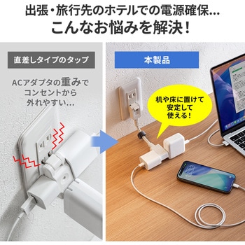 ケーブル長は10cmと短く、持ち運びに便利なモバイル用タップです。