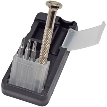 6本分がひとつに!持ち運びにも便利な差替式ミニ精密ドライバーセット。早回し作業ができる回転式グリップエンド。