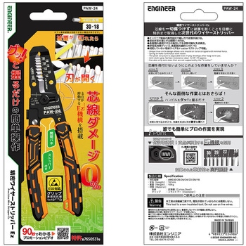 被覆が切れると刃が開くEZ機構搭載の精密ワイヤーストリッパー。エンジニア独自の真円設計で軽い力で被覆が剥けます。対応していない電線サイズもV-cutterでストリップできます。電線を逃がさずカットできるラウンド刃を採用。バネ付きで連続作業もラクラク。長期間の使用によるガタつきを調整できる支点構造。