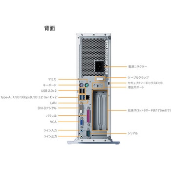 仕様【キーボード、マウス、セキュリティー対策ソフトウェア、液晶ディスプレイ】なし【グラフィックス】インテル(R) UHD グラフィックス(CPU内蔵)【パーティション分割】サービスパーティション分割なし【ベースユニット】Endeavor AT998【拡張ユニット】PCI + PCIその他定額保守サービス/1年間無償 お預かり修理※3年間部品保証(標準)表示PCリサイクルマーク/なしメモリー8GB(4GB×2) PC4-3200 DDR4 SDRAMディスク光ドライブ/スリムDVD-ROMドライブ(添付ソフトあり)使用CPUインテル(R) Core(TM) i3-14100 プロセッサー(4コア(4P+0E)/3.5GHz)電源コード電源コード 2芯(標準)OSWindows 11 Pro 64bitチップセットインテル(R) H610 チップセット(標準搭載)サウンドシステムインテル(R) ハイ・デフィニション・オーディオ(標準搭載)ストレージ(1基目)256GB SSD シリアルATA 600MB/s対応有線LANポート/1000Base-T/100Base-TX/10Base-T対応ネットワーク機能(標準搭載)シリアルポートシリアルポート×1(標準搭載)セキュリティ機能インテル(R) PTT(TPM 2.0)(標準搭載)USBUSB 5Gbps(A×4)、USB 2.0×2(標準搭載)カードリーダーマルチカードリーダーなし内容量1台