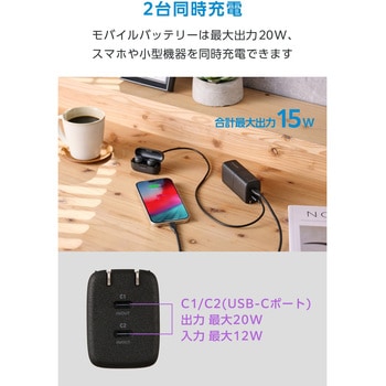 USB Type-C(TM)ポート×2を搭載。スマートフォンとワイヤレスイヤホンなど、複数のデバイスを接続して一気に充電できます。