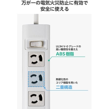 本体筐体にはUL94 V-0グレードの高い難燃性を備えたABS樹脂、差込口周りには熱硬化性のユリア樹脂を用いた構造で、万が一の電気火災防止に有効です。