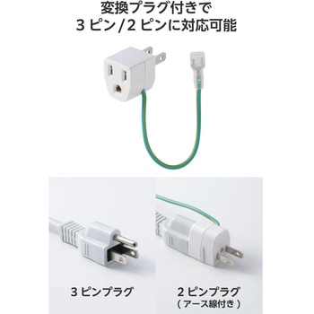 3ピンプラグを2ピンプラグ(アース線付き)に変換できるアダプターが付属しています。