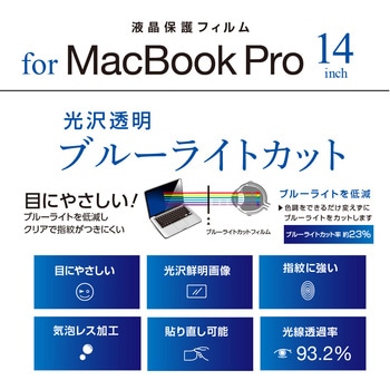 MacBook Pro 14インチ用フィルム/透明光沢ブルーライトカット
