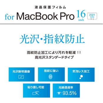MacBook Pro 16インチ用フィルム/光沢指紋防止