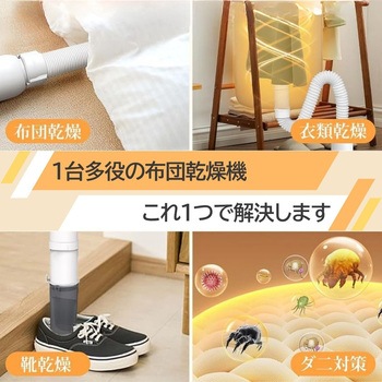 布団・衣類・靴に使えるマルチ乾燥機。季節を問わず暖房・湿気対策に便利で、低温モードで素材を傷めず安全に乾燥できます。コンパクトで持ち運びしやすく、宿泊施設・介護施設・保育園など省スペースでも活用可能。タイマー機能付きで不在時も安心です。