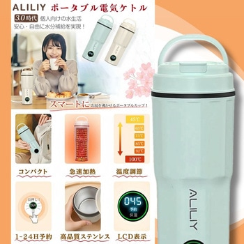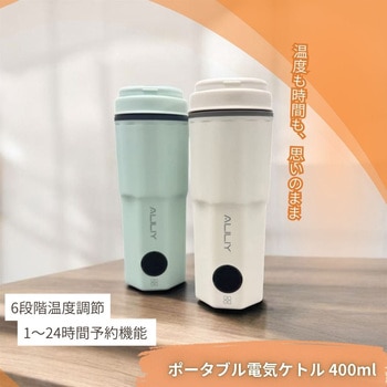 100~240V対応で海外でも使えるコンパクト電気ケトル。300W省電力でポータブル電源でも使用可能。6段階温度調節と長時間保温、1~24時間予約設定を搭載。400ml容量で約5~8分の急速沸騰。食品級304ステンレスの二重構造で保温・やけど防止。空だき防止と自動電源オフ、PSE認証で安心。