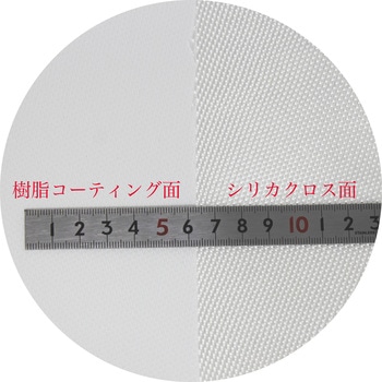 耐火性に優れています(約1000℃/30分)形状維持のため片面を耐熱樹脂でコーティングしており、ほつれにくい仕様です。対候性に優れ、屋外での長時間使用が可能です。外観の色は淡黄色/白色です。シリカクロス特有の肌への刺激を軽減しています。
