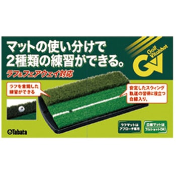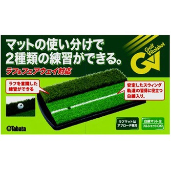 仕様1枚でおいしい2WAYマット。フェアウェイ芝と高さ25mmのリアルなラフ芝の2通りの練習が可能!その他【1】【軌道が分かりやすい白線付き】Tabata(タバタ)オリジナルのゴルフショット練習用マットは、インパクト軌道が分かりやすい白線付きです。1球1球、スイング軌道を意識しながら練習することでスイング上達に繋げましょう。【2】【衝撃吸収マット&ゴムティー専用ホール】底面に貼られた厚さ7mmのラバースポンジが、ショット時の衝撃を和らげます。メーカー製ゴムティーに対応した専用ホール付きで、メーカー製ゴムティーがぴったりセットできるから、ドライバーショットの練習も可能です。【3】【しっかりした重みでズレにくい】総質量1.3kgとしっかりと重みのあるゴム製のベースを使用しているから、ドライバーショットでもズレにくく安定した練習が可能です。寸法(mm)マット/430×253質量(g)1350素材芝・ラフマット/PP・PE、白線マット/ナイロン、ベース/ラバー内容量1個