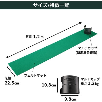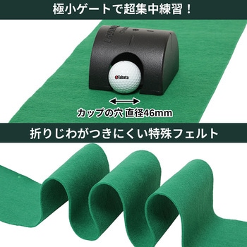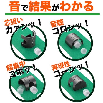 藤田寛之プロおすすめ!4種類の練習ができる画期的なパターマット。練習のためではなく、本番のための練習が可能!パター練習を自宅で行う時に、実際にはない傾斜が気になる人は多いだろう。このマルチカップ付きのパターマットはフラットパターマットなので傾斜の懸念も関係なしだ。日本の技術を詰め込んだパターマットで是非、ショートパットの匠になってもらいたい。"パッティング練習は「耳」を使え。パッティングは耳で音を聞くことが大切。このフレーズはゴルフを嗜む人であれば1度は聞いたことがあるのではないだろうか。音を聞くことは単にパットの良しあしの判断のためだけではない。「耳」で判断することで、視覚に頼りがちな意識をフォームへもっていくことが狙いなのである。それを実現していく手助けとなるのがこのフラットマットである。