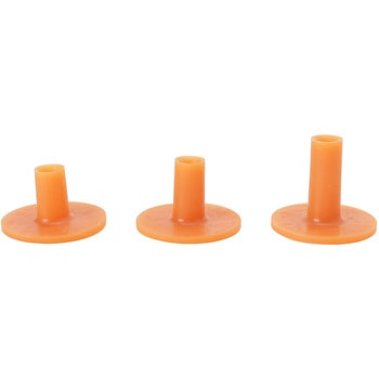 Sサイズ(30mm)・Mサイズ(35mm)・Lサイズ(46mm)の3サイズセットのパーマネントティー。ショットマットに取り付けて使用する場合、実際のティーアップの高さはマットの厚みをマイナスした高さになります。Tabata(タバタ)のショットマット使用時のティーアップ高さはティー全長より-19mm。