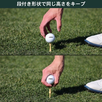 芝に差しやすい、やや細身のウッドティー。段付きなのでいつも一定の高さでティーアップができます。