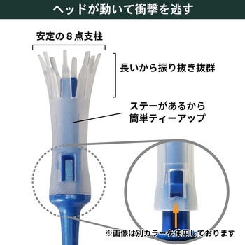 可動式ヘッドが衝撃を逃し、驚きの振り抜きを実現!ボールが直接、硬質のステー (中心軸)を押すことによるスムーズなティーアップを誘導。ボール支持部の直径が大きいのでティーアップ時にボールが安定!段つき構造でいつでも同じ高さでのティーアップが可能です。