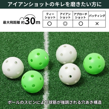 ボールのスピンにより球筋が強調される穴あき構造のゴルフ練習用ボール。ティーショットやアプローチショットの練習にも使えます。アイアンショットのキレと冴えを磨くならこれ! 穴あき構造でスピンによる球筋を強調。
