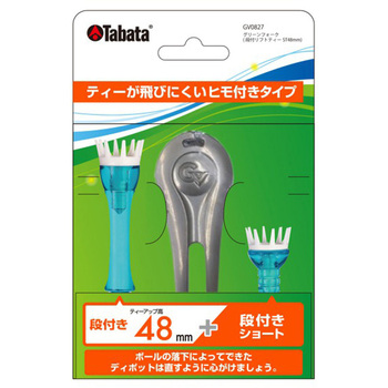 ラウンドマナーの必需品「グリーンフォーク」とリフトティーをセットにしたラウンドセット。グリーンフォークは手になじみやすい形状なので使うほどにフィット感が増してきます!セットのリフトティーは「これひとつで1ラウンドOK」なひもつき2サイズティー。メインの段付きリフトティーは8支点タイプで振り抜きがいいのに安定感もあるロングセラー商品段付きでいつも一定の高さ(48mm)でティーアップできるのも魅力です。