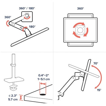 用途オフィスワーク、在宅ワーク、ハイブリッドワークセット内容LX Proアーム、エクステンション、モニターピボット、グロメットマウント、ラージベース、30cmポール、ポールカラー、取り付け金具ホワイト取付方式グロメット本体質量(kg)4荷重範囲(kg)1.8~10保証期間10年間取付け方法グロメットVESAマウント(mm)100×100、75×75適合モニターサイズ34インチ伸縮範囲(cm)56RoHS指令(10物質対応)対応モニターサイズ34インチ昇降範囲(mm)330可動範囲(°)パン:360、縦横回転 : 360、チルト:後方70前方15内容量1個