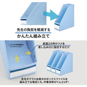 補強板付で裂けに強く、丈夫で長持ち!学校の置き勉用に特化した壊れにくいボックスファイル前面の手掛け部分の内側に補強板が付いているから、裂けにくい。タイトルラベルのポケットが破れにくいサイドイン式かんさつボードも入るゆとりある奥行き側面はたわみにくい二回折り仕様底面二ヵ所のツメを差し込むだけのかんたん組み立て