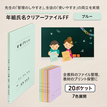 全教科のファイル管理に便利な、年組氏名フラットファイルデザインのクリアーファイル!年組氏名の記入欄で生徒が同じ位置に書けるから、先生が管理しやすい。定番のフラットファイルと同じシリーズで揃えられる。教科によって色分けできる色展開。