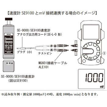 別売の速度計SE9000 / SE9100と接続可能。エレベータの昇降機やベルトコンベアなど被測定対象から離れた所での速度が測定できます。