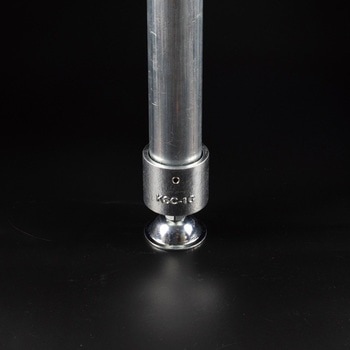 キャップタイプのジョイントに水平調整の脚パーツを取り付けた金具。傾斜地面にも対応可能。