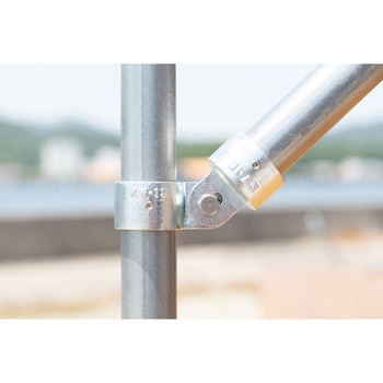 1ヶ所止めで1本の単管パイプをベースマウント。壁面などに固定する際に使用可能。